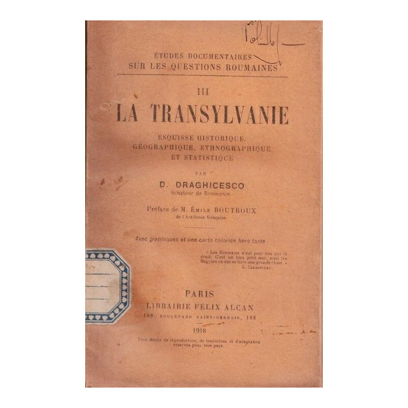 La Transylvanie : Esquisse Historique Gographique Ethnographique Et Statistique / D. Draghicesco