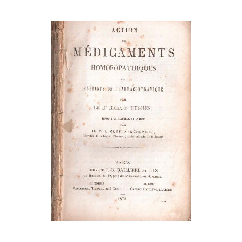 Action des médicaments homoeopathiques ou éléments de pharmacodynamique