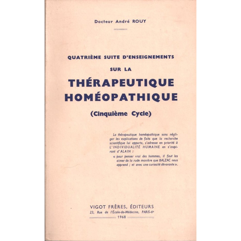 Quatrième suite d'enseignements sur la thérapeutique homoeopathique ( cinquième cycle )